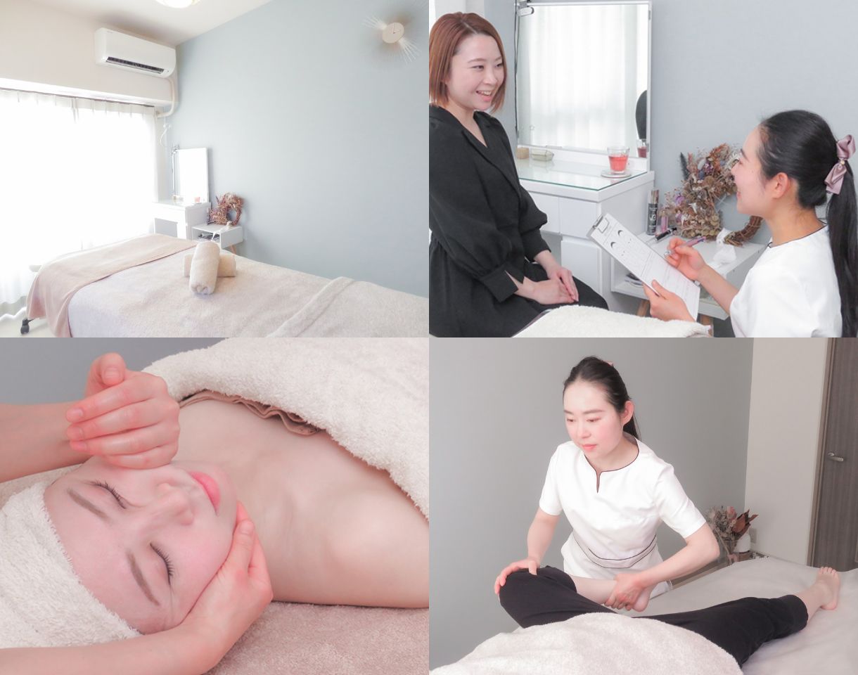 他のお客様とお顔をあわせることのない完全貸し切りのプライベート空間で人目を気にせず、セラピストに今のお悩みや、なりたい姿をお伝えください。数あるメニューの中から最高のご提案をお約束させて頂きます。